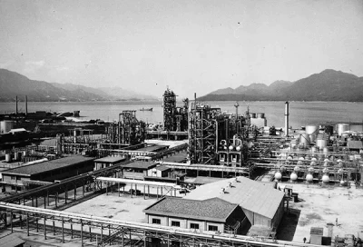 1955年7月に通産省から石油化学工業育成対策が発表され、石油化学工業の台頭に対応して、石油化学コンビナートに参画することとなり、1961年に大日本化成株式会社(現 大竹工場)を創設しました。酢酸、ブタノール、メトキシブタノール、酢酸エステル類の製造をスタートさせ、その後生産品目を拡げていきました。設立当時の社員全員が “ON THE SAME BOAT”(一蓮托生)を合言葉に力を合わせて、工場建設に汗を流した苦労話は、「大竹物語」として語り継がれています。