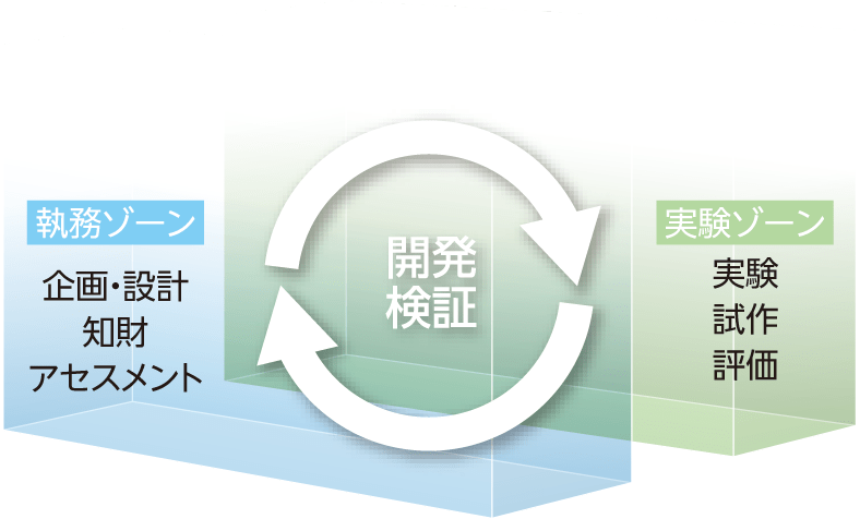 豊かな生活を実現する新しい価値の創造に向けて、研究開発においては「シーズ探索の拡大」と「事業化力の強化」を両立するため、研究(Research)と開発(Development)の機能的な自立を重視します。循環型社会の構築に向けて、お客様目線によるシーズの掘り起こしを行うことによって研究のテーマの幅を広げ、開発では絞り込みを行い確実に事業化につなげます。また、当社の強みである攻めの知的財産活動を、事業創出のために最大限に活用しています。