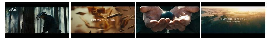 植物由来の素材を創り続けた誇りと、誰にも真似できない革新技術を武器に、 次々と新たな反応や融合を生み出しながら、愛せる未来を無限に創造し続けていく。 そのダイセルの意志を、一つの世界からいくつもの視点で切り出した マルチアニメーションによって描き出しています。
