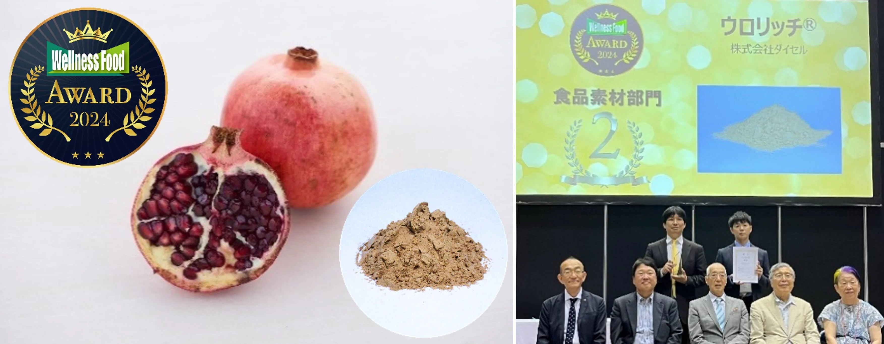 株式会社ダイセル(本社:大阪市北区、代表取締役社長 小河義美)が開発した、ウロリチンA含有の機能性食品素材「ウロリッチR」が、ウェルネスフードジャパン実行委員会が主催する「ウェルネスフードアワード2024」の食品素材部門において銀賞を受賞しました。