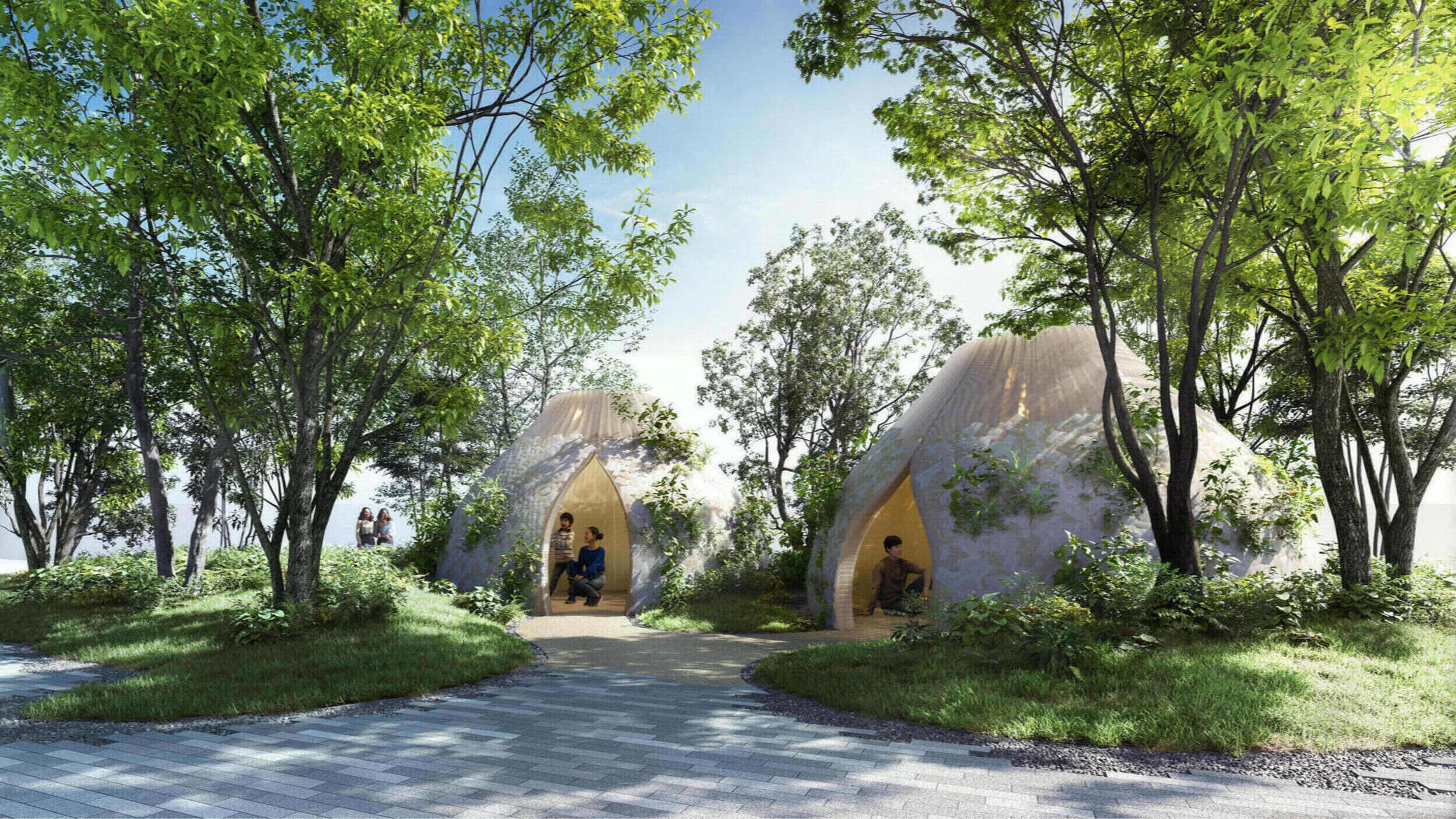 「森になる建築」は、酢酸セルロース樹脂「CAFBLO®」を3Dプリントしたものを構造材とし、外装材は手すきの和紙などと植物によって構成されます。生分解性樹脂を3Dプリントして建築する構造物としては、世界でも最大級の大きさとなる予定です。