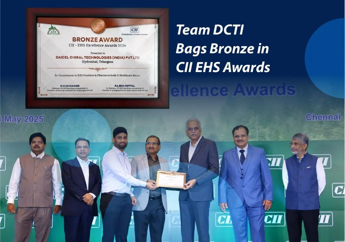 当社子会社である光学異性体分離カラム事業のインド拠点Daicel Chiral Technologies (India) Pvt. Ltd. (DCTI)が、第17回インド産業連盟(CII)-EHSエクセレンスアワードで製薬・ヘルスケア分野におけるEHS(環境・健康・安全)の実践への強いコミットメントが評価され、ブロンズ賞を受賞しました。 授賞式は2025年5月8日にインド チェンナイ(Chennai)で開催されました。