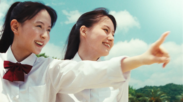 砂浜に飛び込んできた少女が熱心に砂に何かを描くシーンから始まり、工場をバックに2人の少女が帰路につく場面、そして工場夜景へと転換します。