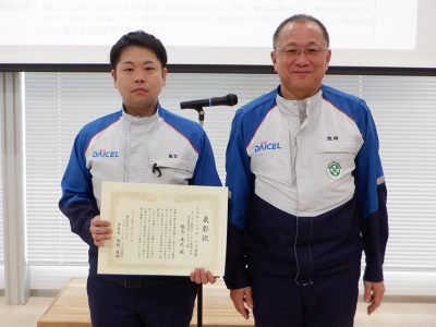 RC委員会では毎年度、RC活動における善行や貢献に対して表彰を行っています。2024年度は、以下2件の取り組みについて、当社新井工場ならびにダイセル新井ケミカル株式会社の12名が表彰されました。