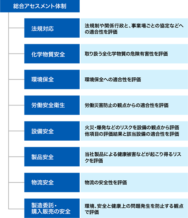 当社グループでは、事業活動を通じてリスク評価を行う仕組みとして「環境、安全と健康の総合アセスメント制度」(以下、総合アセスメント制度)を運用しています。